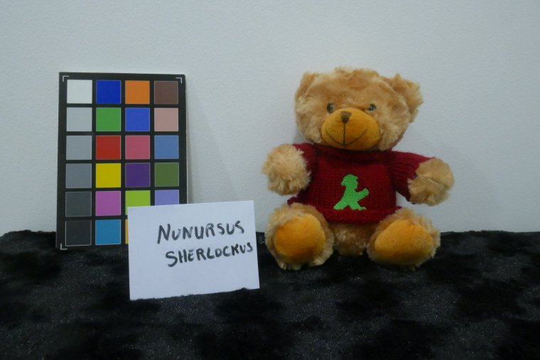 - Porte un pull rouge avec une silhouette de Sherlock Holmes verte dessus