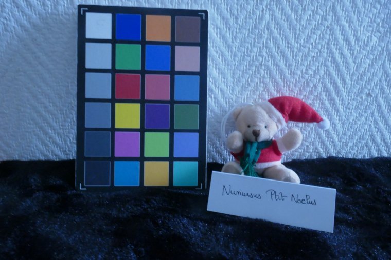 - Porte un bonnet rouge à pompon blanc, ainsi qu'une petite veste rouge et une écharpe verte