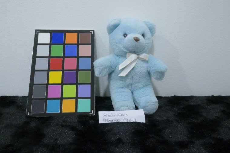 - Possède un hochet dans son corps, et a un noeud papillon blanc autour du cou