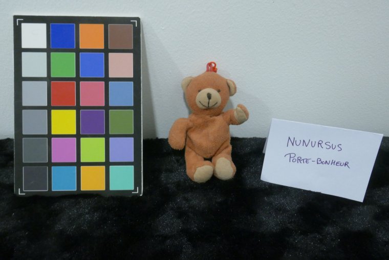 - Possède un crochet rouge attaché sur le haut de sa tête permettant de l'accrocher où l'on veut si besoin
